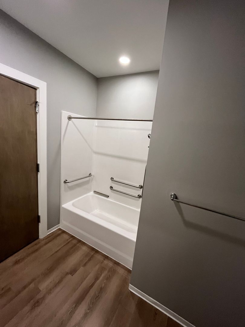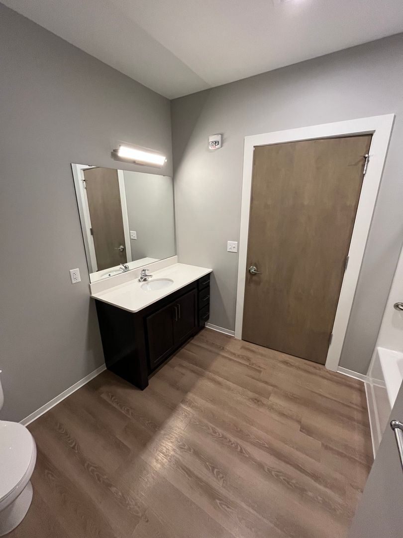 Welcome to our stunning 1 Bed / 1 Bath Unit - Type A Accessible - A8. This gorgeous apartment boasts top-of-the-line amenities, including stainless steel appliances, an in-unit washer/dryer, and quartz countertops. The apartment features 9 foot ceilings, rolling window shades, and a spacious tub/shower combo perfect for relaxing after a long day. The walk-in closet provides ample storage space for all your clothes and household items. Plus, we offer online payment, bike storage, and a fitness center for your convenience. The building also features a common room, perfect for events and meetings. Furthermore, the apartment is pet-friendly, so you can bring your furry friends along! Our parking lot is available for an additional fee per month. Come make this stunning apartment your next home!
