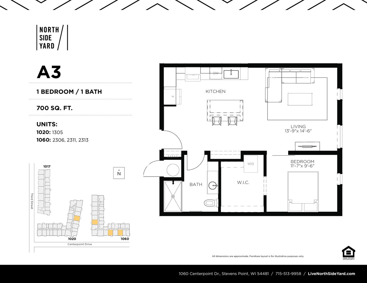 This is a 1 Bedroom, 1 Bathroom unit located in North Side Yard (NSY), Stevens Point's first residential apartment community located in downtown! NSY features 159 residential units ranging from studios to 2 bedrooms. These secure buildings have ample bike storage and are just steps from the Wisconsin River's riverfront recreation trail. NSY is within walking distance to the public square (where Farmers' Market takes place) and historic Main Street attractions. The community has an onsite fitness center and community room for residents.