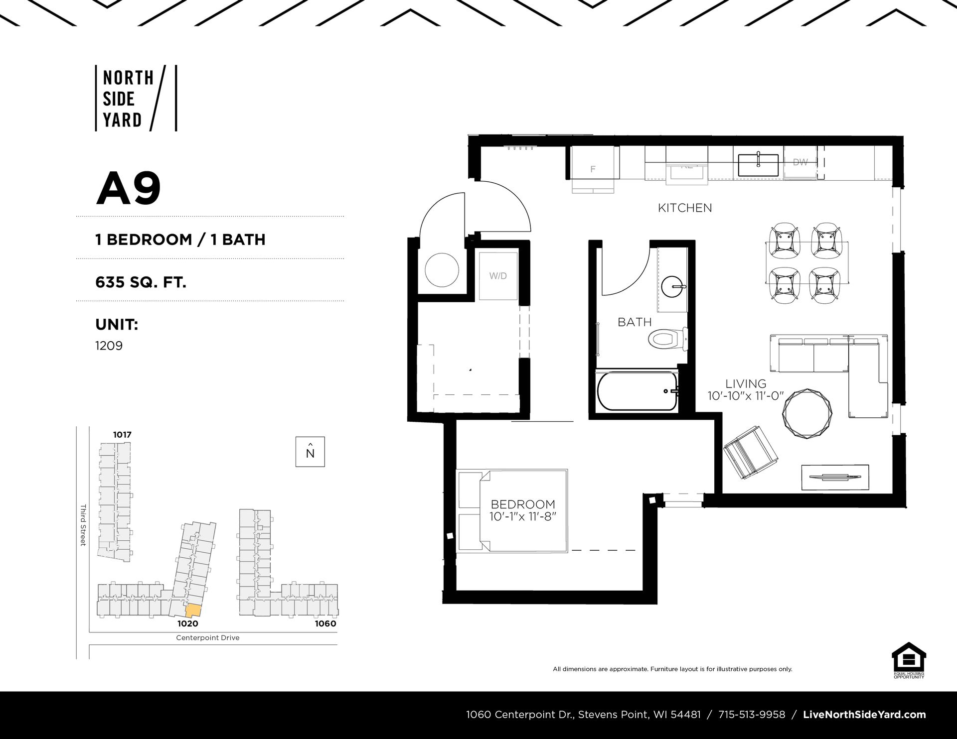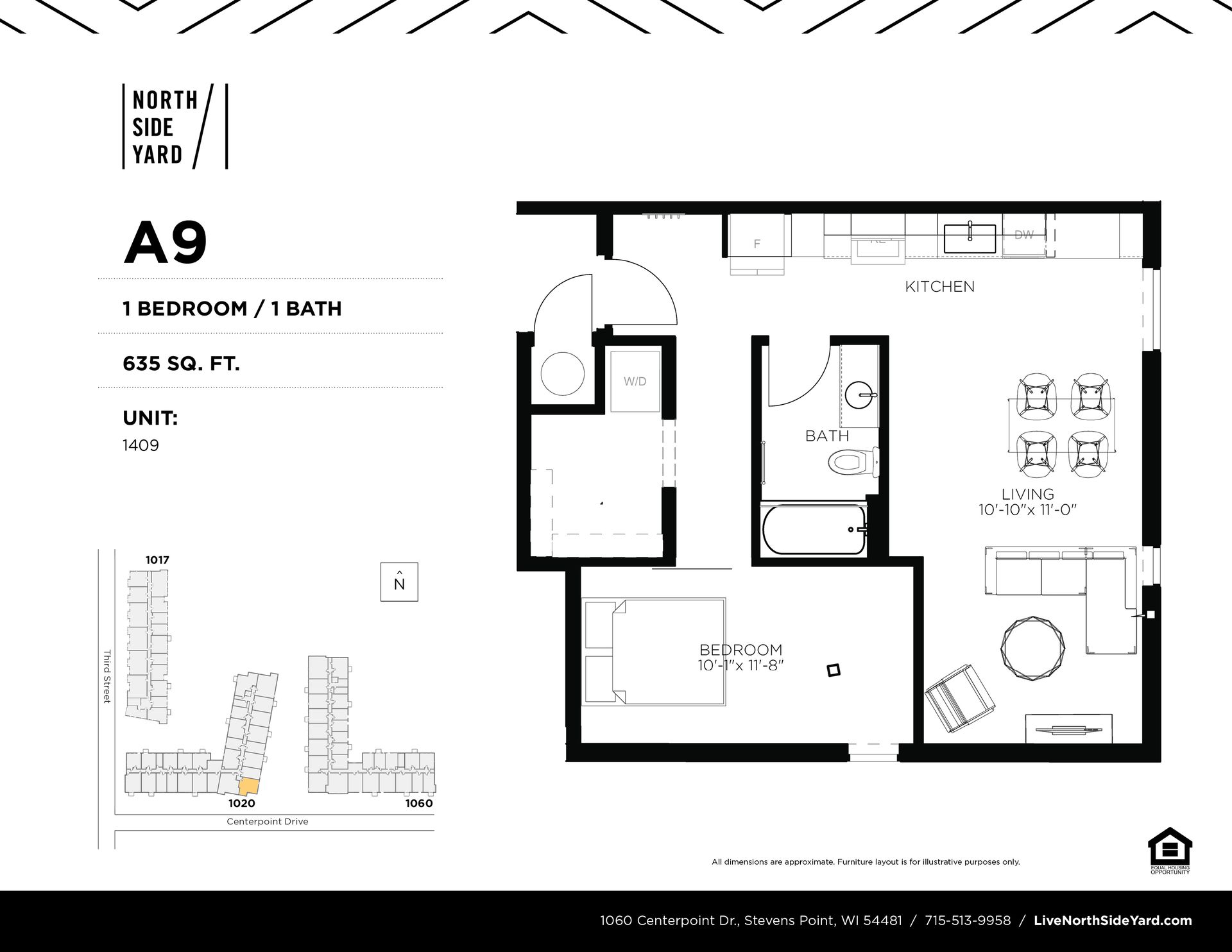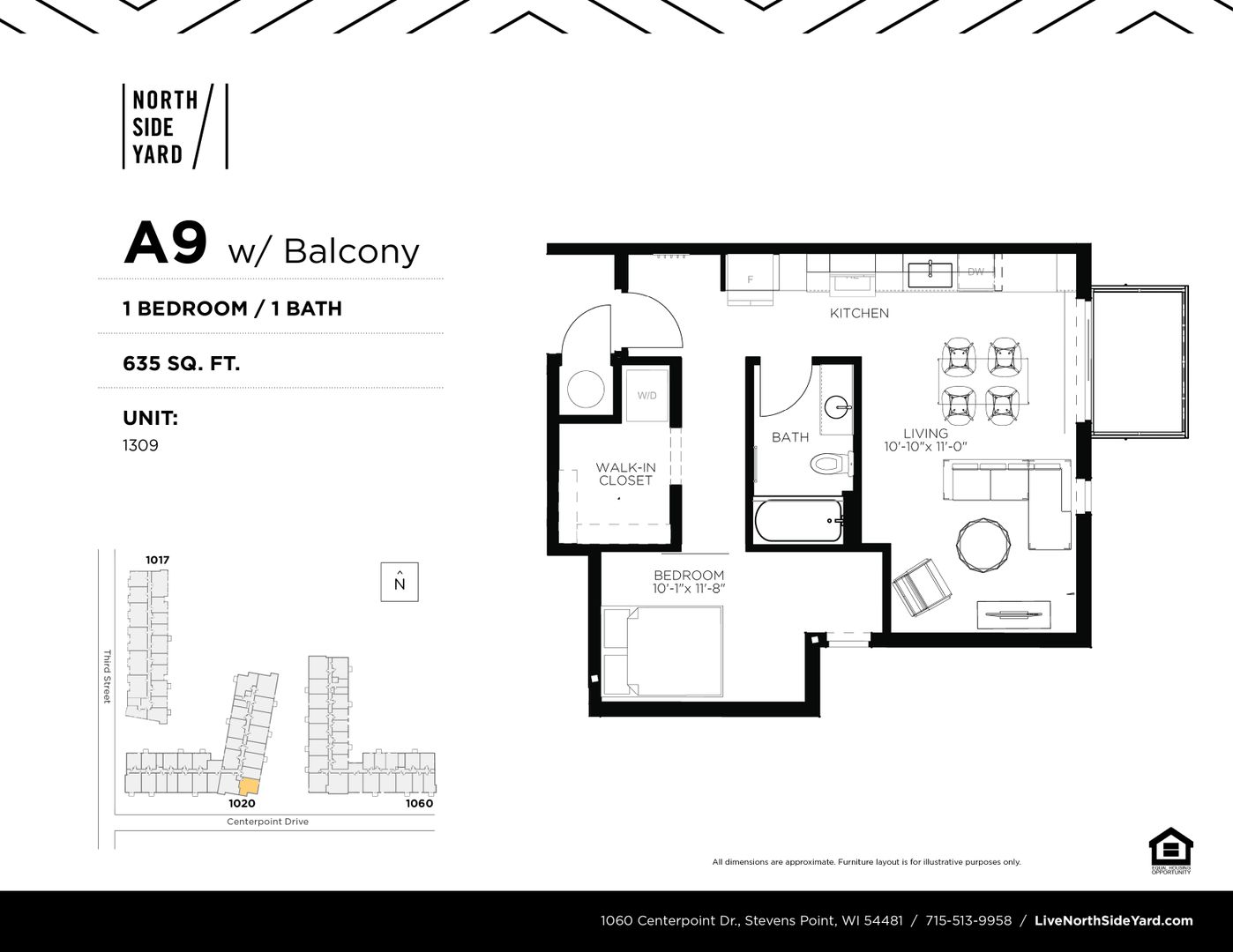 This is a 1 Bedroom, 1 Bathroom unit located in North Side Yard (NSY), Stevens Point's first residential apartment community located in downtown! NSY features 159 residential units ranging from studios to 2 bedrooms. These secure buildings have ample bike storage and are just steps from the Wisconsin River's riverfront recreation trail. NSY is within walking distance to the public square (where Farmers' Market takes place) and historic Main Street attractions. The community has an onsite fitness center and community room for residents.