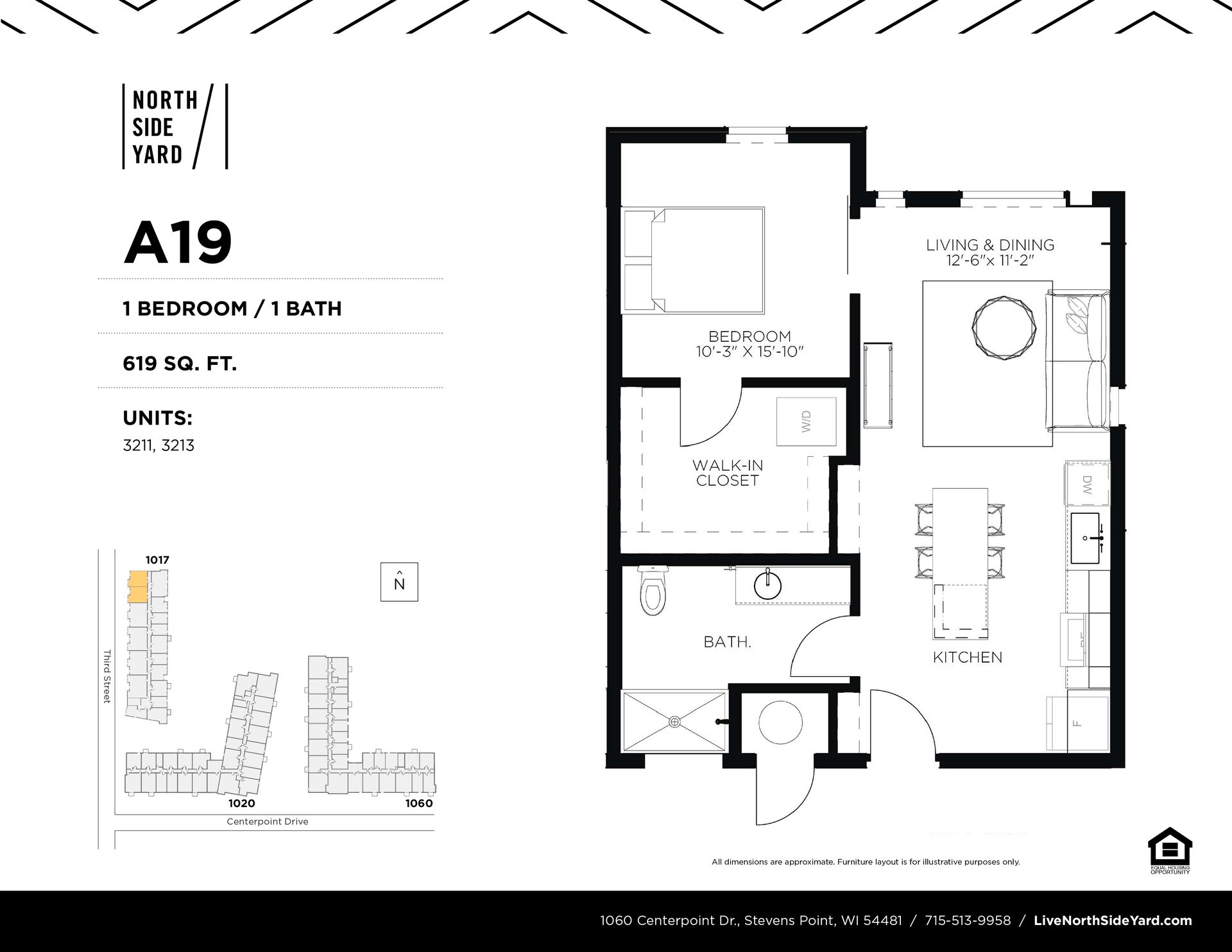 This is a 1 bedroom, 1 bathroom unit in North Side Yard, Stevens Point's first residential apartment community located in downtown! North Side Yard features 213 residential units ranging from studios to 2 bedrooms. The secure buildings have ample bike storage and are just steps from the Wisconsin River's riverfront recreation trail. The building is within walking distance to the public square (where Farmers' Market takes place) and historic Main Street attractions. The property has an onsite fitness center and community room for residents. All units are equipped with in-unit washer & dryer, dishwasher, and select units have balconies. North Side Yard is a pet-friendly property.