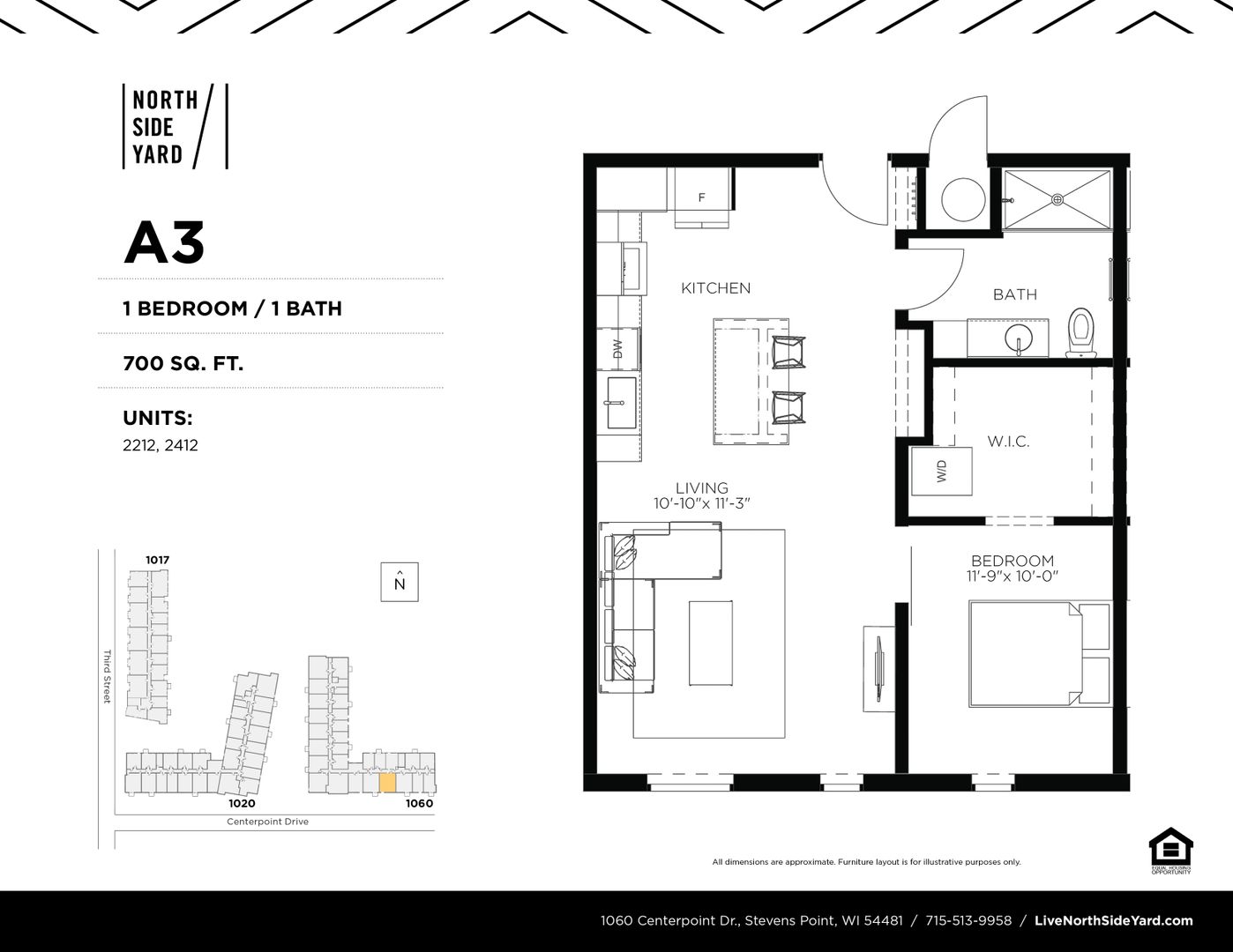 This is a 1 Bedroom, 1 Bathroom unit located in North Side Yard (NSY), Stevens Point's first residential apartment community located in downtown! NSY features 159 residential units ranging from studios to 2 bedrooms. These secure buildings have ample bike storage and are just steps from the Wisconsin River's riverfront recreation trail. NSY is within walking distance to the public square (where Farmers' Market takes place) and historic Main Street attractions. The community has an onsite fitness center and community room for residents.