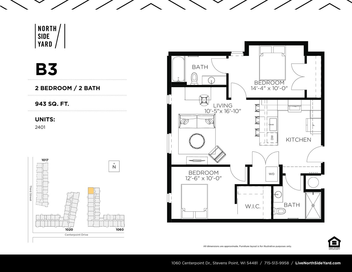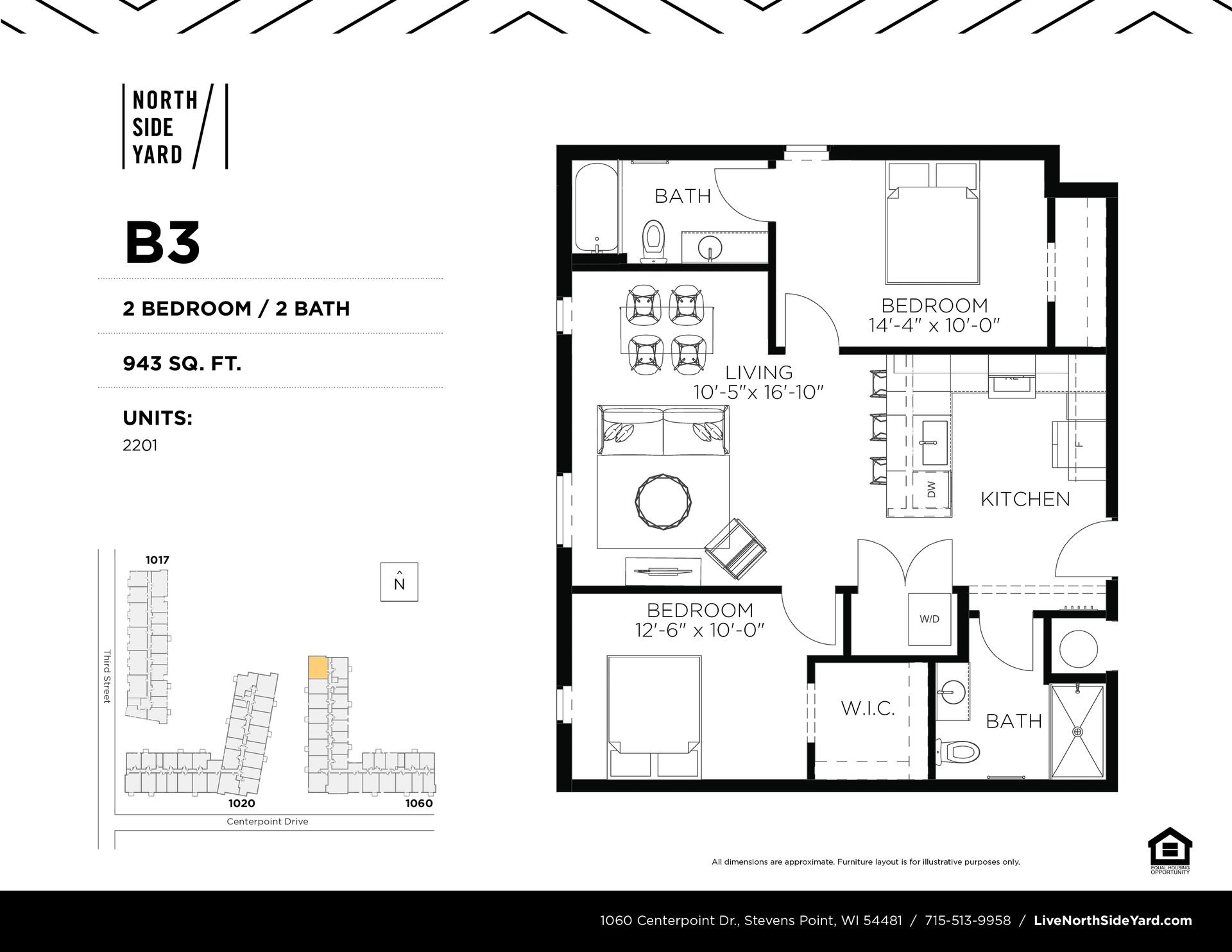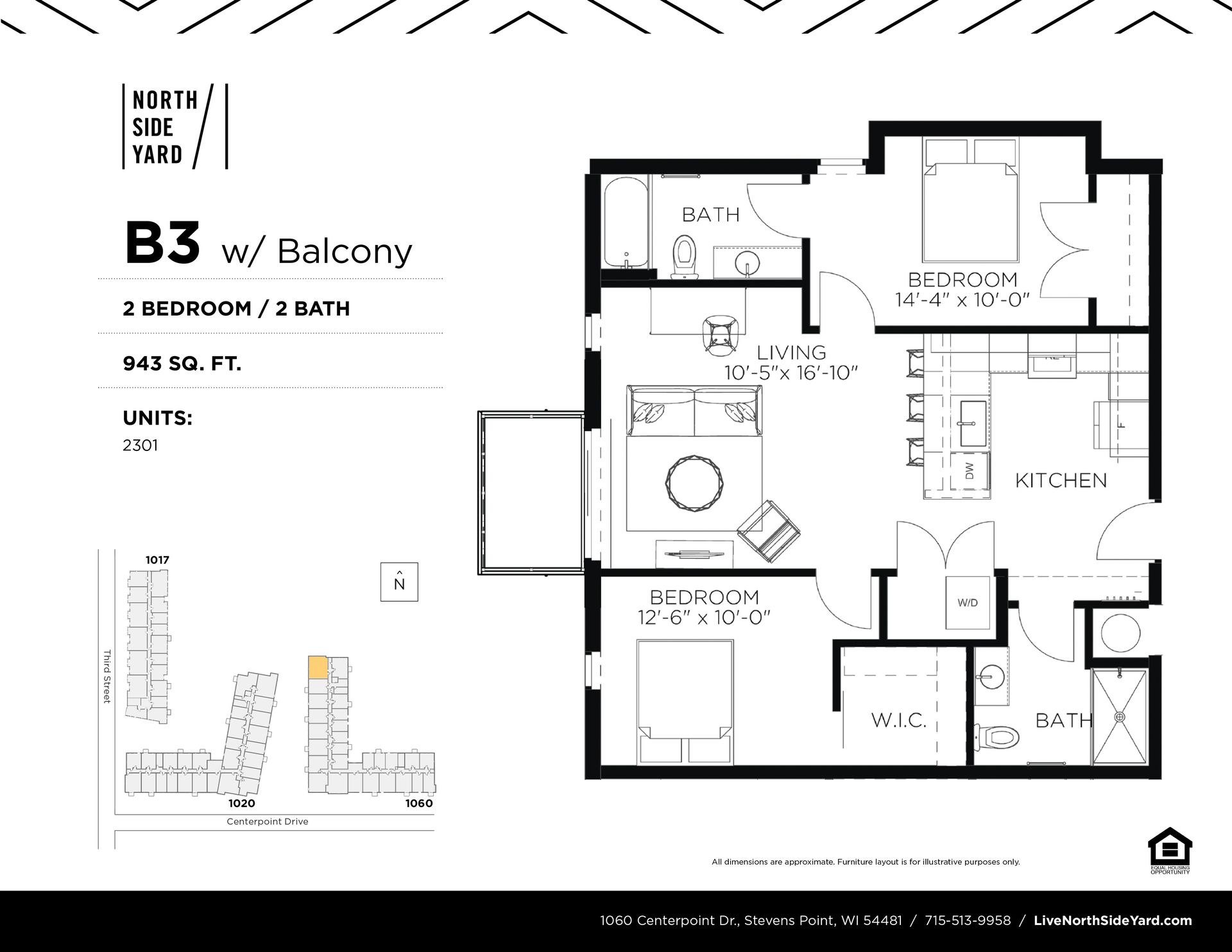 This is a 2 Bedroom, 2 Bathroom unit located in North Side Yard (NSY), Stevens Point's first residential apartment community located in downtown! NSY features 159 residential units ranging from studios to 2 bedrooms. These secure buildings have ample bike storage and are just steps from the Wisconsin River's riverfront recreation trail. NSY is within walking distance to the public square (where Farmers' Market takes place) and historic Main Street attractions. The community has an onsite fitness center and community room for residents.