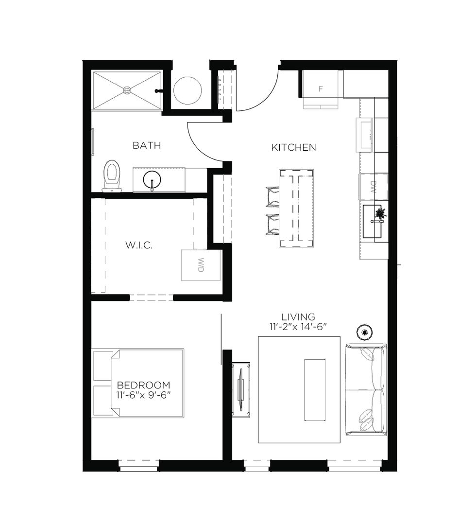 1 Bed / 1 Bath Unit - A2