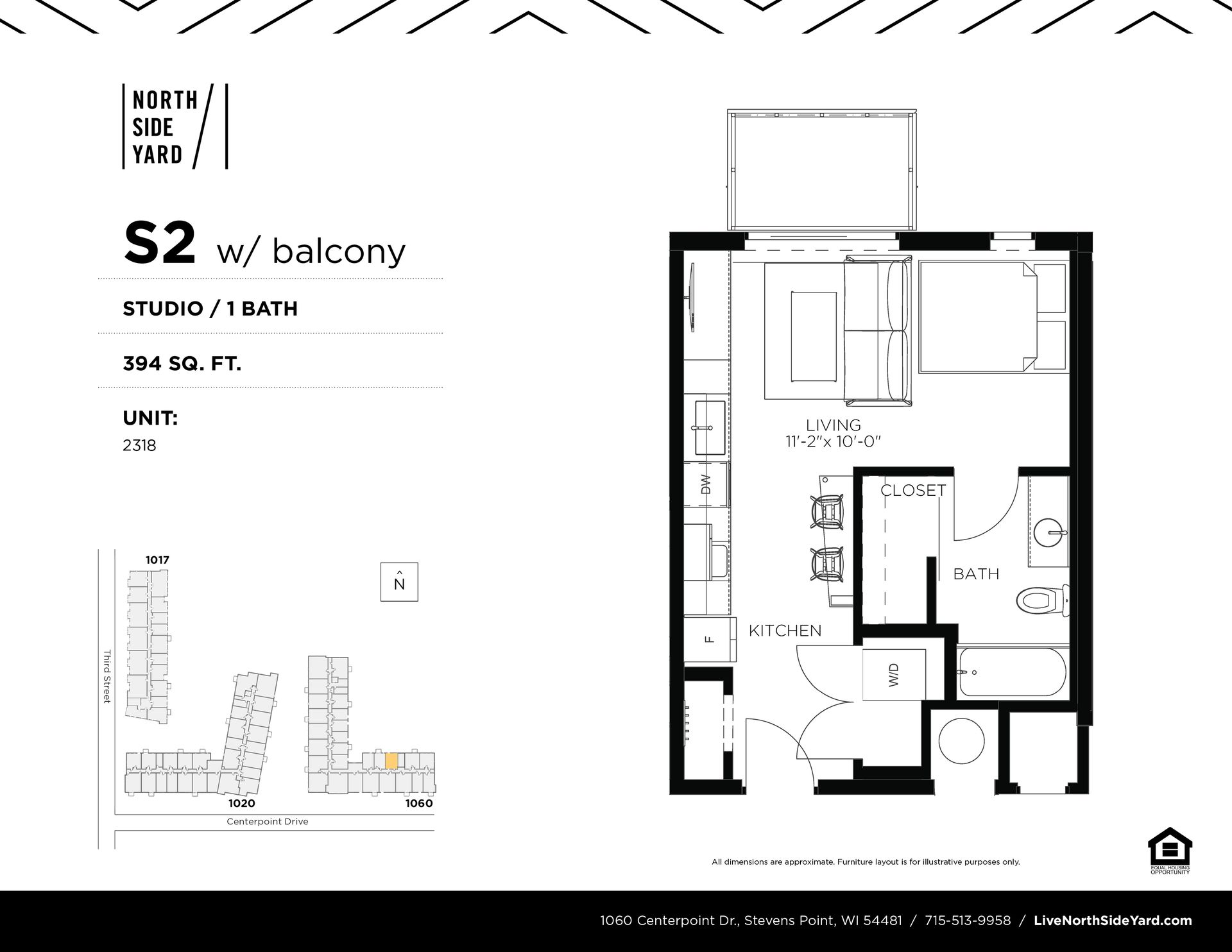 This is a Studio unit located in North Side Yard (NSY), Stevens Point's first residential apartment community located in downtown! NSY features 159 residential units ranging from studios to 2 bedrooms. These secure buildings have ample bike storage and are just steps from the Wisconsin River's riverfront recreation trail. NSY is within walking distance to the public square (where Farmers' Market takes place) and historic Main Street attractions. The community has an onsite fitness center and community room for residents.