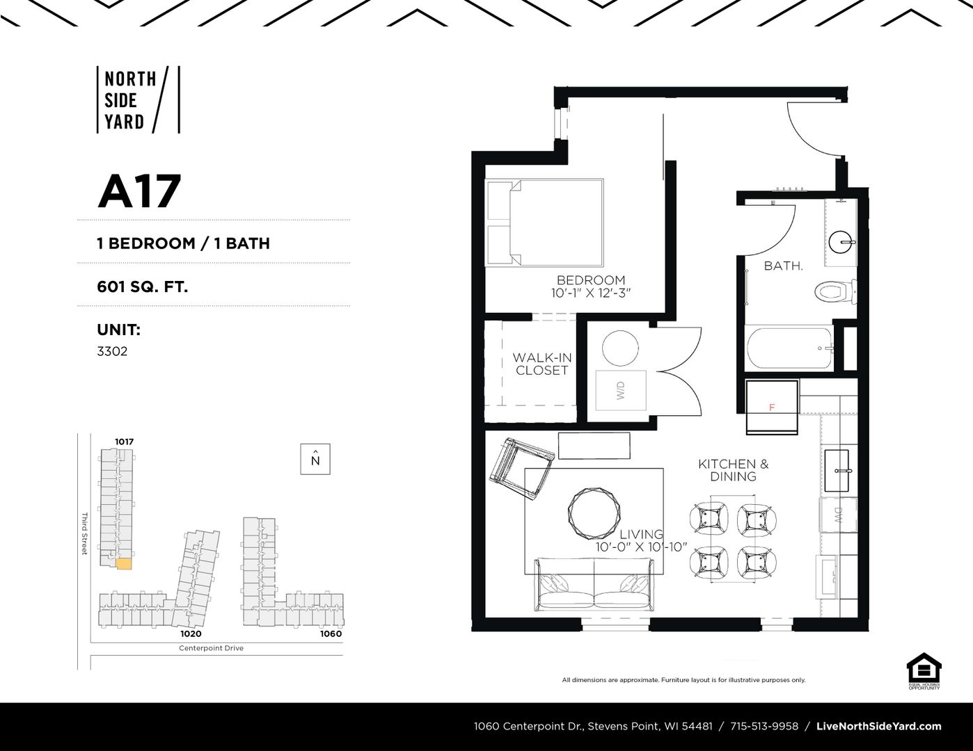 This is a 1 bedroom, 1 bathroom unit in North Side Yard, Stevens Point's first residential apartment community located in downtown! North Side Yard features 213 residential units ranging from studios to 2 bedrooms. The secure buildings have ample bike storage and are just steps from the Wisconsin River's riverfront recreation trail. The building is within walking distance to the public square (where Farmers' Market takes place) and historic Main Street attractions. The property has an onsite fitness center and community room for residents. All units are equipped with in-unit washer & dryer, dishwasher, and select units have balconies. North Side Yard is a pet-friendly property.
