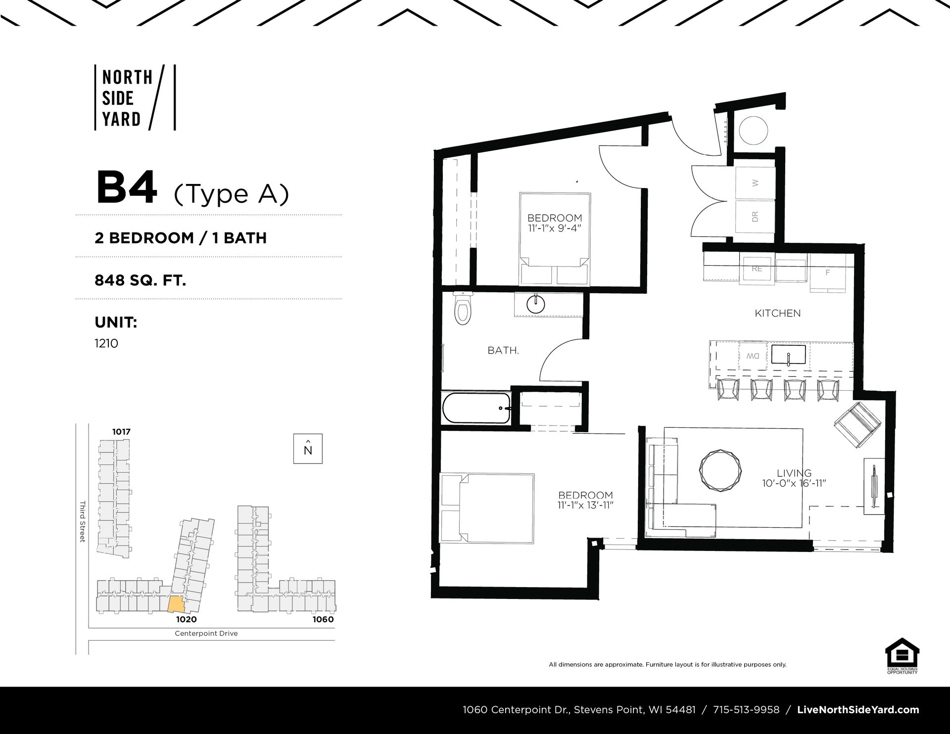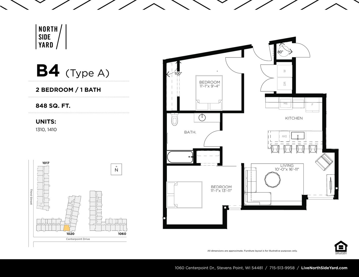 This is a 2 Bedroom, 1 Bathroom Type A accessible unit located in North Side Yard (NSY), Stevens Point's first residential apartment community located in downtown! NSY features 159 residential units ranging from studios to 2 bedrooms. These secure buildings have ample bike storage and are just steps from the Wisconsin River's riverfront recreation trail. NSY is within walking distance to the public square (where Farmers' Market takes place) and historic Main Street attractions. The community has an onsite fitness center and community room for residents.