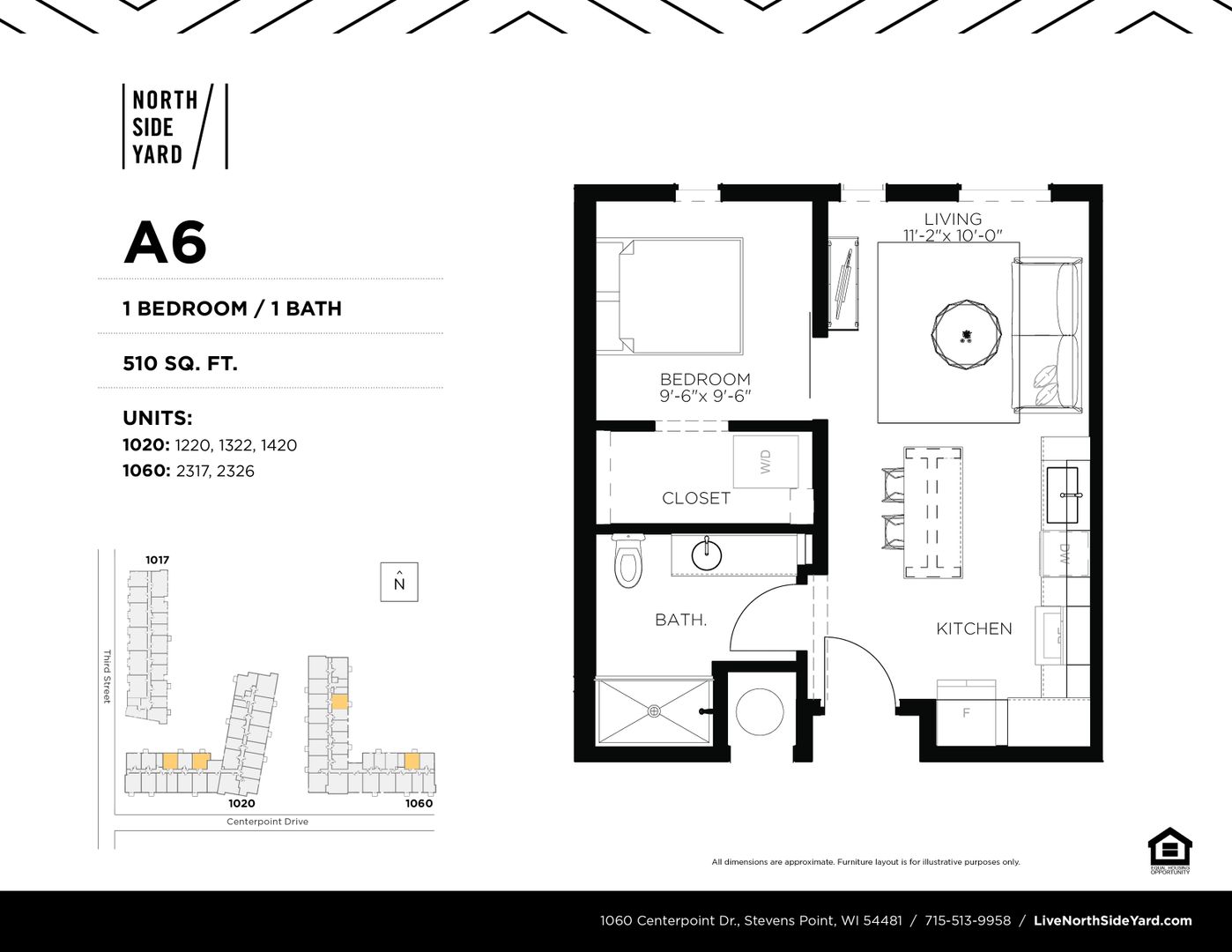 This is a 1 Bedroom, 1 Bathroom unit located in North Side Yard (NSY), Stevens Point's first residential apartment community located in downtown! NSY features 159 residential units ranging from studios to 2 bedrooms. These secure buildings have ample bike storage and are just steps from the Wisconsin River's riverfront recreation trail. NSY is within walking distance to the public square (where Farmers' Market takes place) and historic Main Street attractions. The community has an onsite fitness center and community room for residents.