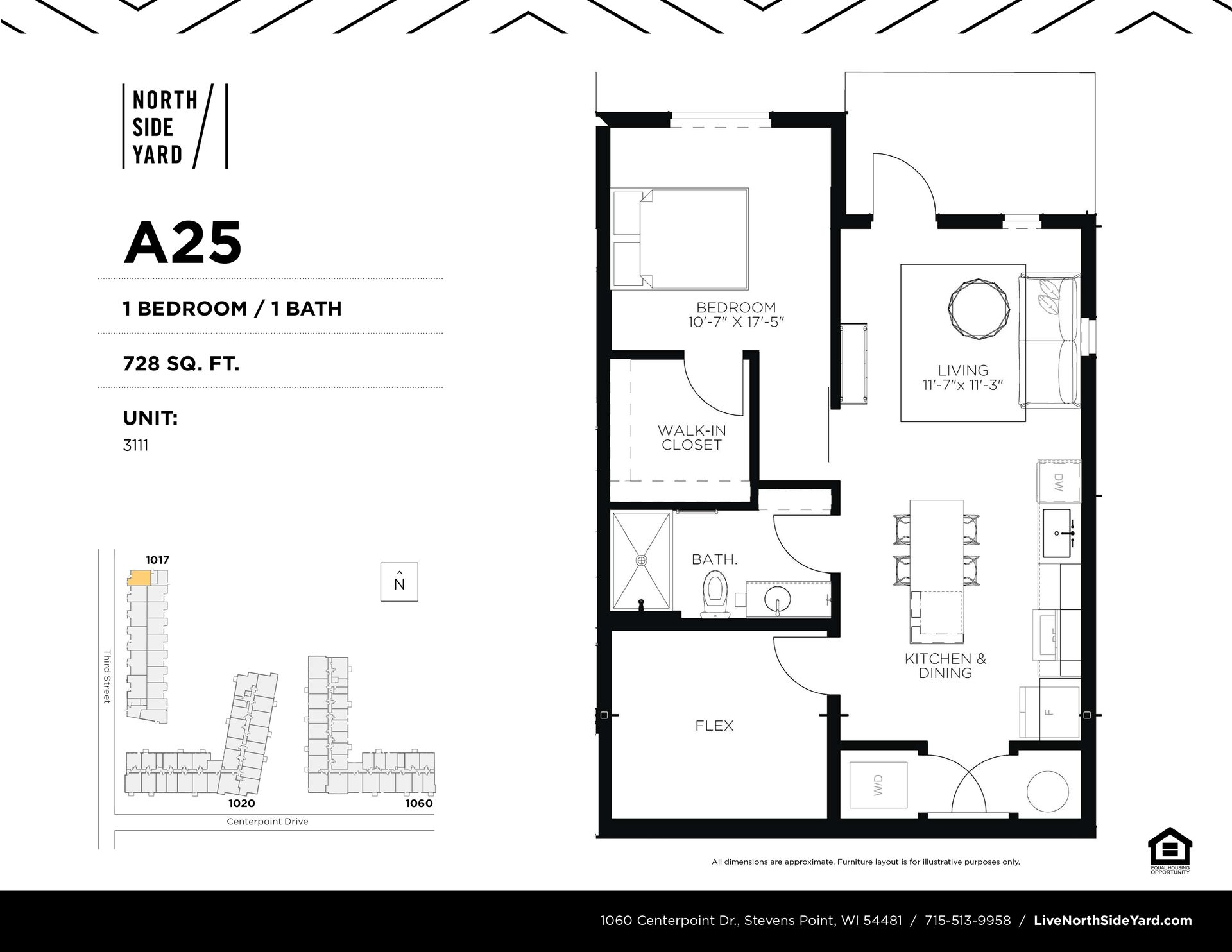 This is a 1 bedroom, 1 bathroom unit in North Side Yard, Stevens Point's first residential apartment community located in downtown! North Side Yard features 213 residential units ranging from studios to 2 bedrooms. The secure buildings have ample bike storage and are just steps from the Wisconsin River's riverfront recreation trail. The building is within walking distance to the public square (where Farmers' Market takes place) and historic Main Street attractions. The property has an onsite fitness center and community room for residents. All units are equipped with in-unit washer & dryer, dishwasher, and select units have balconies. North Side Yard is a pet-friendly property.