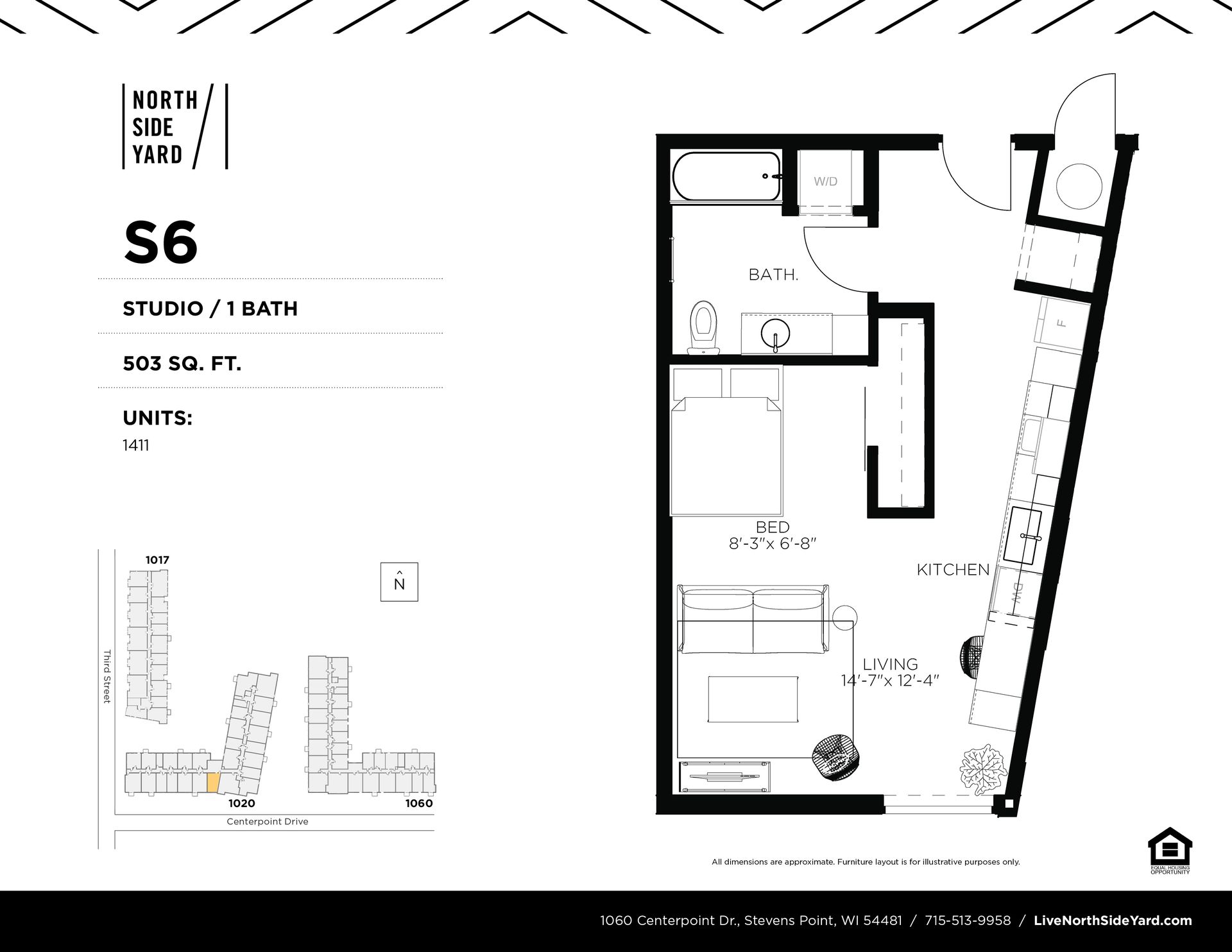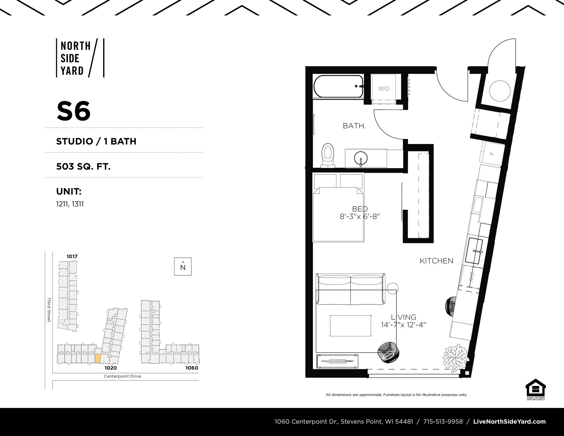 This is a Studio unit located in North Side Yard (NSY), Stevens Point's first residential apartment community located in downtown! NSY features 159 residential units ranging from studios to 2 bedrooms. These secure buildings have ample bike storage and are just steps from the Wisconsin River's riverfront recreation trail. NSY is within walking distance to the public square (where Farmers' Market takes place) and historic Main Street attractions. The community has an onsite fitness center and community room for residents.