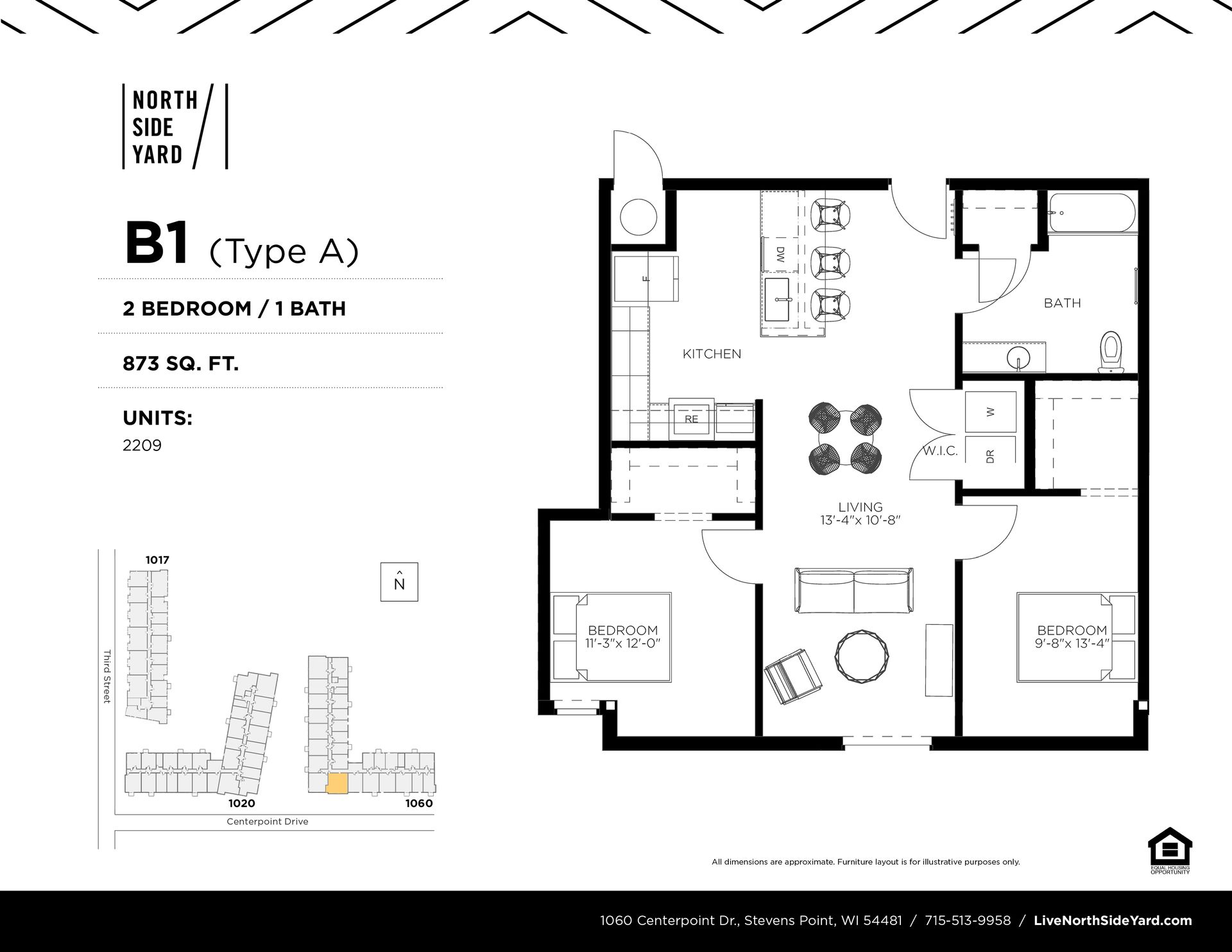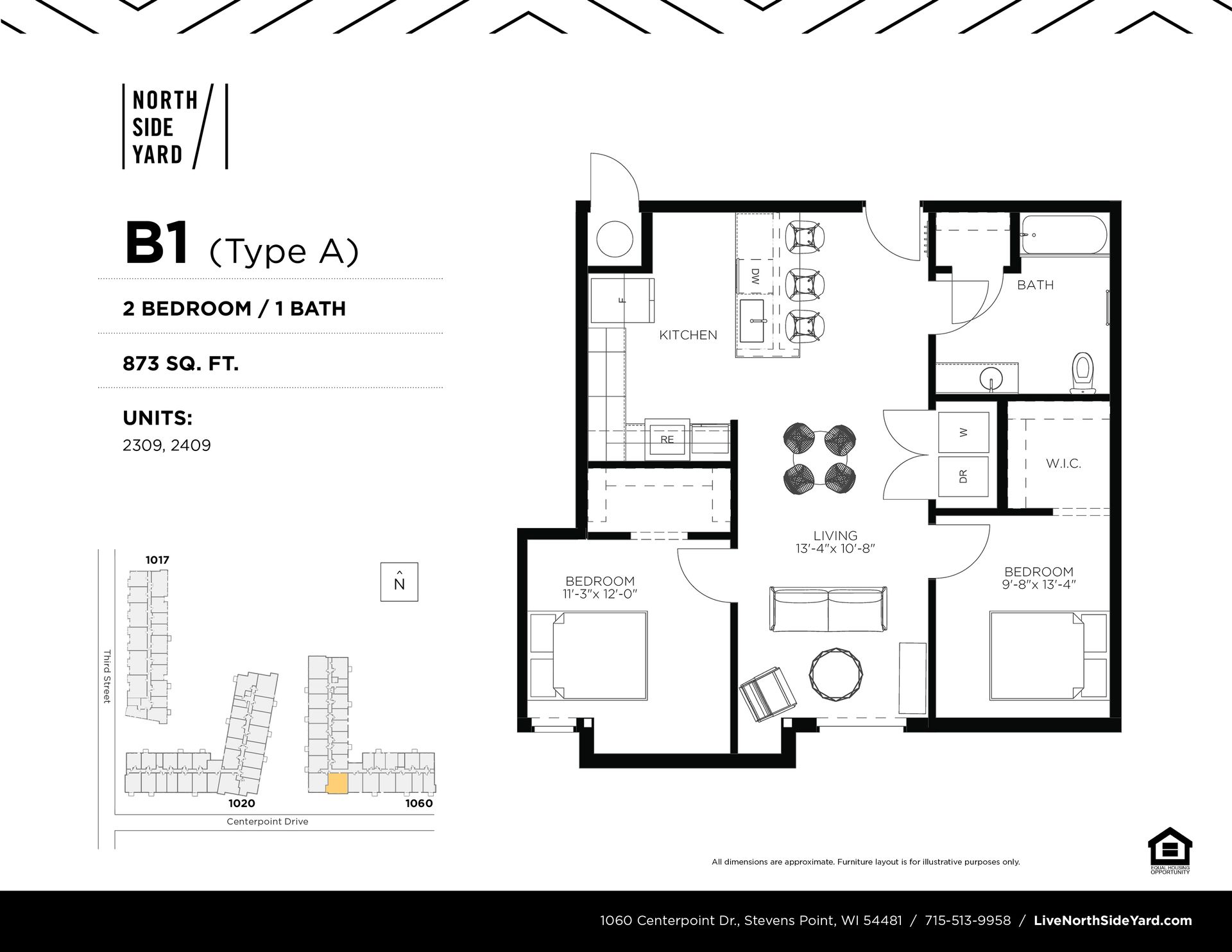 This is a 2 Bedroom, 1 Bathroom Type A accessible unit located at North Side Yard, with the option to rent fully furnished! The listing rate is based on a 12-month unfurnished rental.