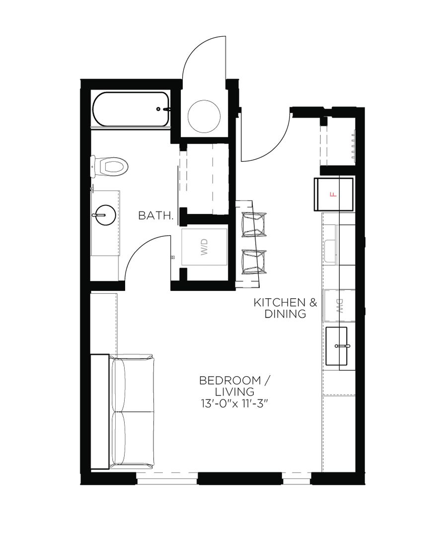* The murphy bed + balcony shown is only available in specific units.
