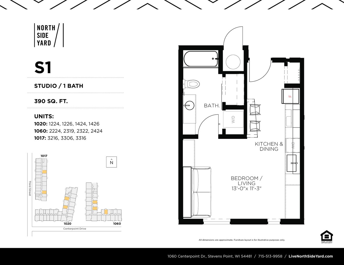 This is a Studio unit located in North Side Yard (NSY), Stevens Point's first residential apartment community located in downtown! NSY features 159 residential units ranging from studios to 2 bedrooms. These secure buildings have ample bike storage and are just steps from the Wisconsin River's riverfront recreation trail. NSY is within walking distance to the public square (where Farmers' Market takes place) and historic Main Street attractions. The community has an onsite fitness center and community room for residents.